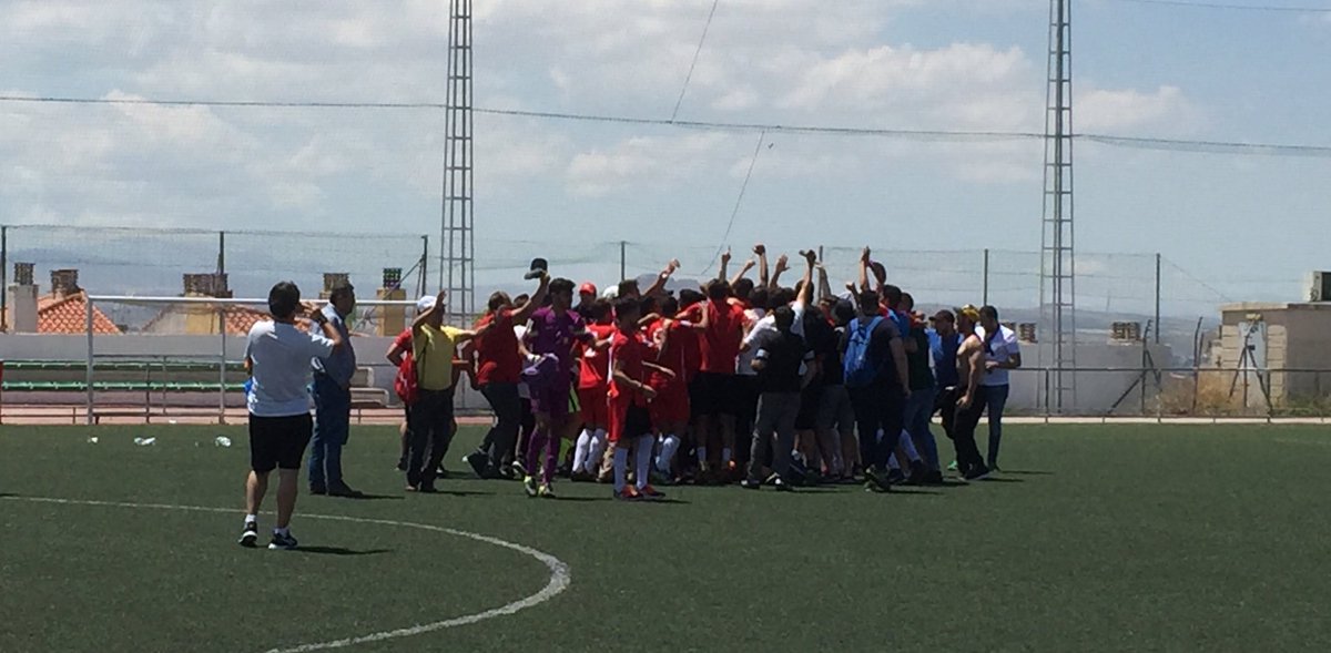 Alegría de la UD Almería B en Las Viñas tras acabar el partido 1-1, que le daba el pase a la fase de ascenso. Foto: Twitter Huétor Vega.