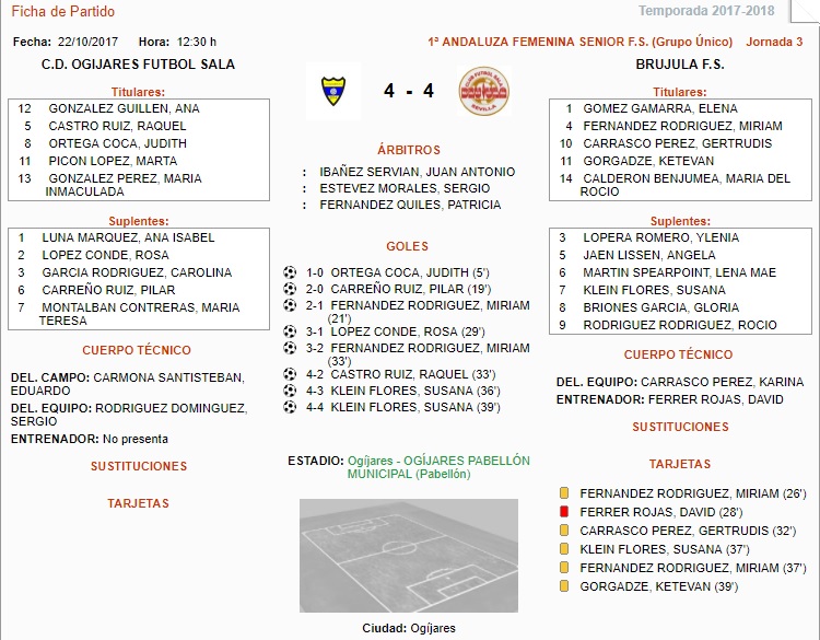 Gran partido visto en el Pabellón Municipal de Ogijares donde el duelo de recién ascendidos los deja co-lideres de la categoría junto a dos equipos veteranos en la categoría,Albolote Fustal y Monachil C.F,y un recién ascendido como es Atlético Huelin.