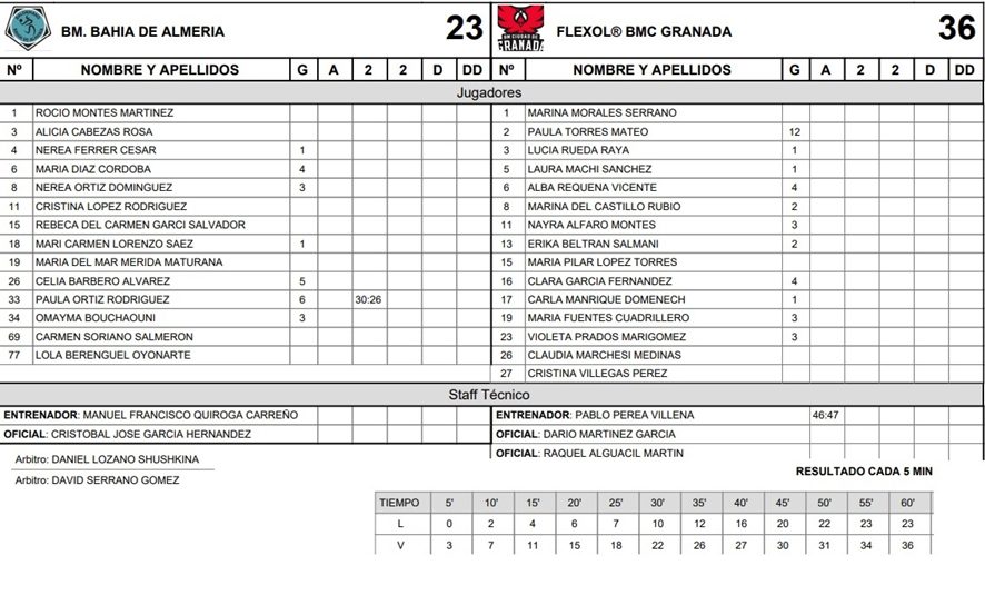FLEXOL BM CIUDAD DE GRANADA VENCE A DOMICILIO A BM. BAHIA DE ALMERIA 23 – 36 Y SE PROCLAMA MATEMATICAMENTE CAMPEÓN DE LIGA A DOS JORNADAS PARA FINALIZAR LA PRIMERA FASE DE LA LIGA.