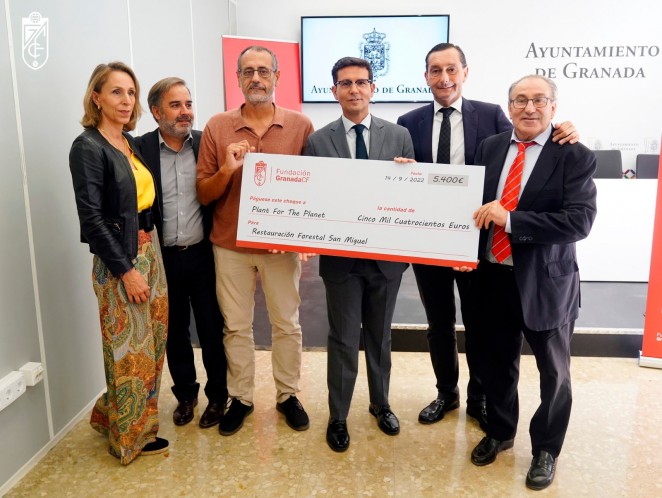 La Fundación Granada CF ha realizado una donación a la Fundación Plant-For-The-Planet, que se encarga de la restauración forestal del Cerro de San Miguel y del entorno de la Abadía del Sacromonte. Esta donación, de 5.400 euros, va a permitir la plantación de más de 1.300 árboles en la zona que el pasado 26 de mayo se vio afectada por un incendio que devastó 172 hectáreas.