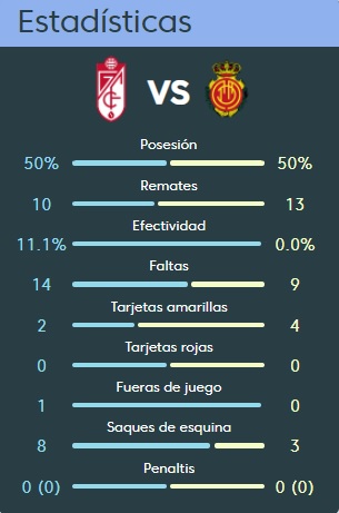 Aridai y Fran Gámez hicieron trabajar a Rui Silva, y Salva Ruiz dispuso de la mejor opción para empatar pero remató mal cuando estaba en franca posición para marcar ante un Granada inactivo en ataque aunque sin pasar apuros al final para llevarse el triunfo.