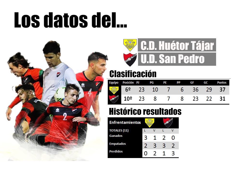 Otro de los partidos importantes para los nuestros será el que dispute el CD Huétor Tájar, que mantiene su buen racha de resultados, ante los malagueños de la UD San Pedro que desde hace algunas jornadas están al alza y poco a poco se van despegando de la zona de descenso. Los amarillos quintos, a dos puntos también de la cuarta plaza, estarán muy pendientes de lo que haga el Martos ante el Alhaurín de la Torre.