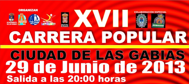La “XVII CARRERA POPULAR CIUDAD DE LAS GABIAS, está organizada y patrocinada por el Ayuntamiento de Las Gabias además de la Excma. Diputación de Granada. Con la colaboración del Club de Atletismo y Senderismo Las Gabias, el Club Deportivo Las Gabias, y la colaboración especial de la Policía Local y del Cuerpo de Voluntarios de Protección Civil de Las Gabias.